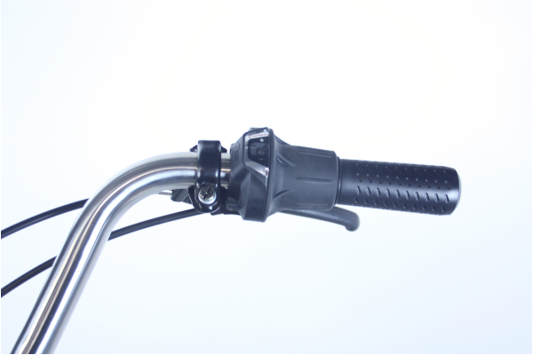 ハンドルを握ったままギアを変更できる、シマノ製のグリップシフトを採用。