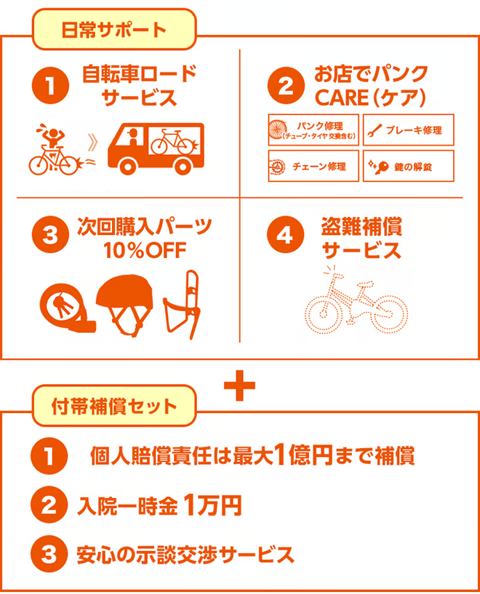 cymaでは日常サポートと自転車保険がセットになった「新・サイマスタンダード安心パック」をご用意しています。最初の3か月は無料で加入でき、万が一の事故や故障の場合にも安心です。