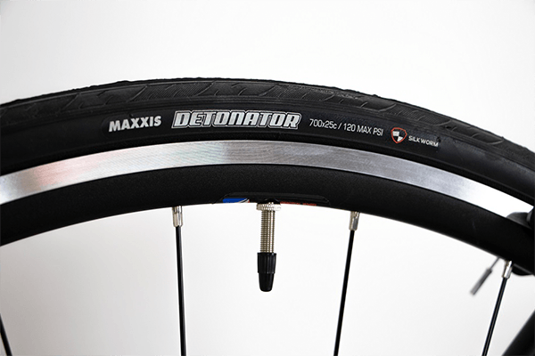 細すぎず、太過ぎない25mm幅のタイヤがスピード感と乗り心地を両立します。
