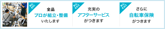 自転車にとって重要な、フレーム、ハンドル、フロントフォークなど消耗品を除く本体を1年間保証。