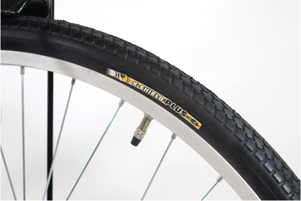通常のタイヤより肉厚の耐パンクタイヤを採用しパンクを防ぎます。