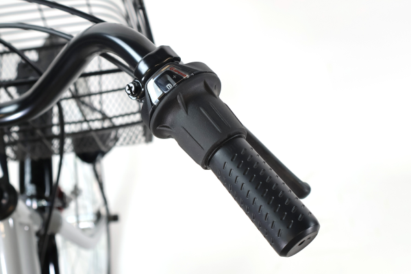 ハンドルを握ったままギアを変更できる、シマノ製のグリップシフトを採用。