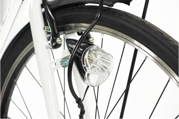 暗くなると点灯するLEDライト。オートライトなので点灯中もペダルが重くなりません。