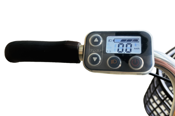 ボタンは大きく操作しやすくなった液晶モデル。バッテリー残量とスピードが見やすくなりました。