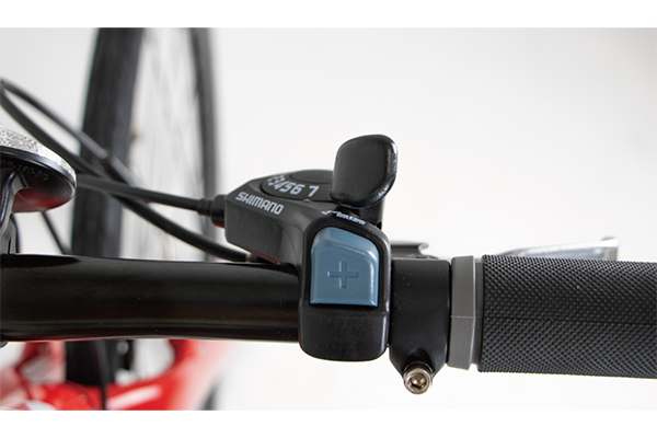 スピードの出やすいクロスバイクを確実にコントロールするVブレーキを採用しています。