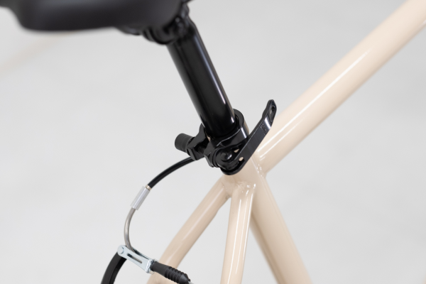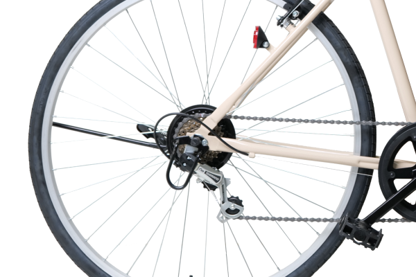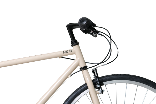 お手頃価格ながらこだわりのクロスバイクを、サイマオリジナル自転車「Toffee」は日常に溶け込むシンプルなデザイン。細身のスチールフレームにさりげないワンポイントロゴがどんなシーンやファッションにも合うルックスを成立させています。ひと漕ぎで良く進むやや大きめの前46Tギアを採用しブレーキには高い制動力を誇るVブレーキを選択。そしてステムの角度にこだわり地面と水平にすることでスポーツバイクらしいスタイリッシュかつスポーティな印象を与えています。