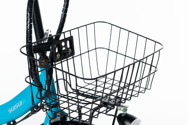 明るいターコイズブルーのフレームにアイボリーのタイヤがマッチしたおしゃれな折り畳み自転車「SUISUI Fleur(フルール)」。ちょっとそこまで乗るには十分なシンプル設計の電動アシスト自転車です!シングルギアで操作は手元スイッチによるアシストの強弱のみの簡単設計♪1回の充電で最大約40km走行可能です。スイッチで操作可能なバッテリー給電式のLEDライトや前かごを装備。また、ブレーキにはスポーツ車に搭載されるVブレーキを採用し電動アシストでも安心のブレーキ性能を確保しています。