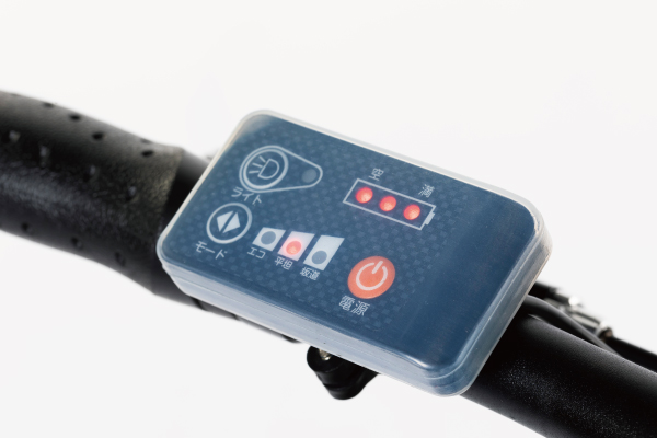 電源ON/OFF、アシスト強度やライトの点灯消灯まで全て手元でコントロール可能です。※保護カバーは標準装備です。