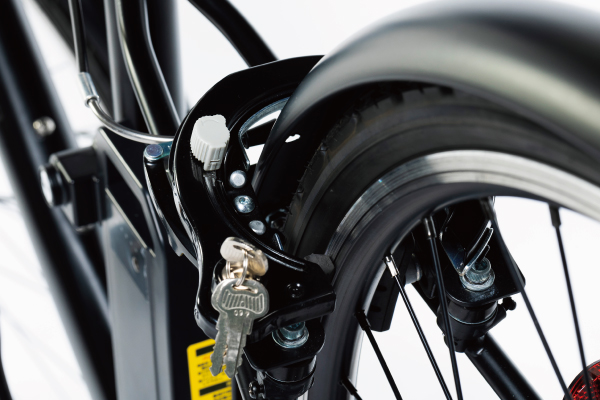 バッテリーキーと共用の後輪サークル錠が備えられています。