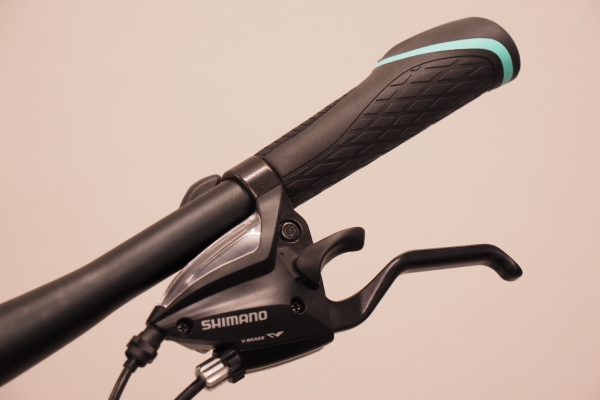 効きが良く確実な制御を実現するVブレーキをセレクト。(※フレームデザインは旧モデルです。)