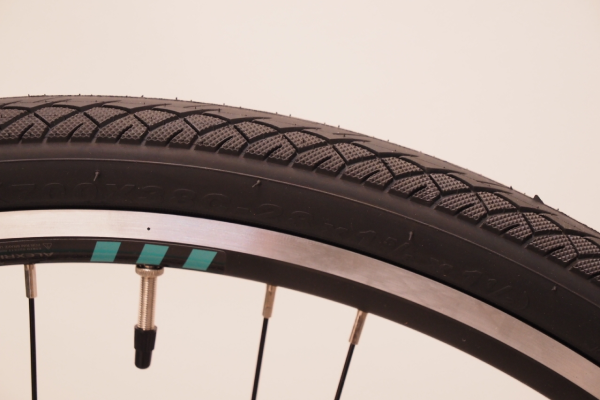 安定感のある太めのタイヤ。(※フレームデザインは旧モデルです。)