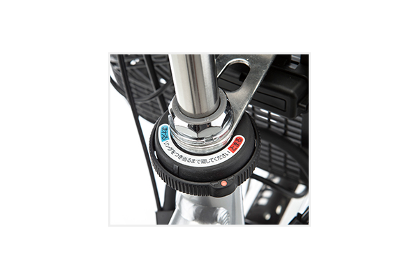 ハンドル部を固定し、駐輪時の転倒を防止します。(※ハンドルを完全に固定する機能ではありません)