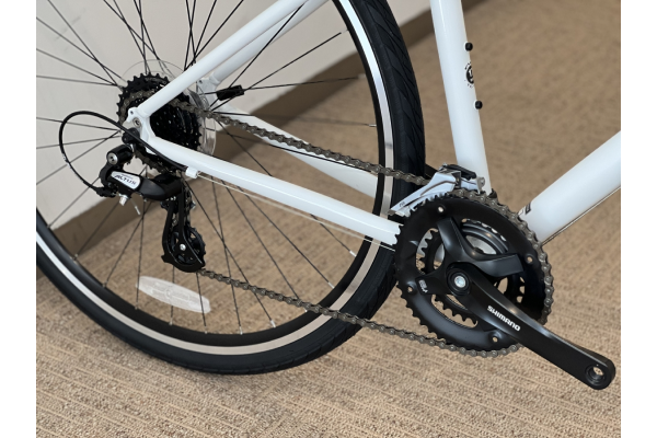 シンプルな形状のアルミフレームに細身のクロモリフォークを組み合わせた、ストリートで映えるデザイン。