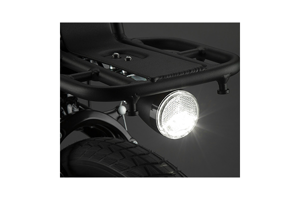 独特なフレームデザインにばかり目が行きますが、太目のタイヤやワイドサドル、深くカーブしたハンドルのおかげで乗り心地も◎。最長78km走行可能な大容量バッテリーもうれしいですね。