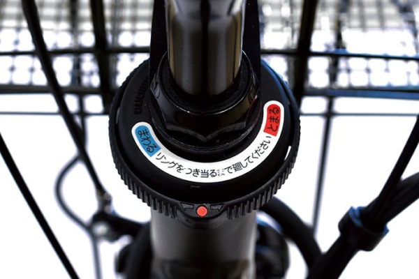 ハンドルの回転をロック。駐輪時に重いものを載せてもふらつきにくく安心。