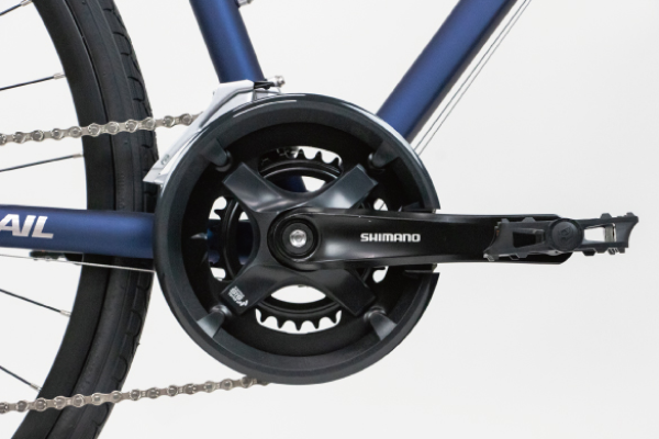 裾の噛み込みを防ぐギアカバー付き前2枚ギアクランク。