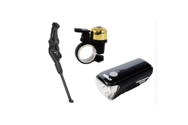法律で義務付けられている装備品など、クロスバイク必須アイテムがまとめて付属しています。(画像はイメージ)