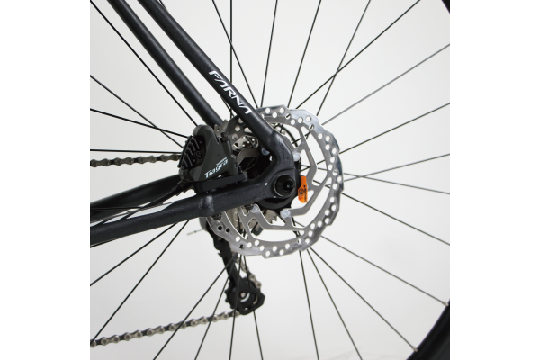 KhodaaBloom(コーダーブルーム)は日本の総合自転車メーカー「ホダカ株式会社」が2008年に立ち上げたスポーツバイクブランドです。ブランド名は、社名であるホダカ(Hodaka)のアナグラム(文字の入れ替え)です。「K」の文字をアタマにもってきたのは「希望」をもってこのブランドを展開しようという願いを込められています。後半のBloom は「華やぐ」という意味でスポーツバイクのある華やいだ生活を提供しようという想いを体現しています。FARNAシリーズは重量剛性比の高いアルミ合金を組み合わせたパイプにトリプルバテッド加工することでフレームを構成するパイプの軽量化を追求。また、手作業で溶接部の凹凸を研磨することで軽量性を追求しつつ、応力集中の原因となる溶接部の急激な肉厚の変化を除去。「軽さ」と「強度」を両立したフレームを実現しています。フォークには軽量なカーボンフォークを搭載。このフォークはブレード部分だけでなくコラムと呼ばれるフレームと結合する芯の部分にいたるまでカーボンを使用しており、これにより地面からの突き上げを和らげ、快適性も手に入れています。コンポーネントはシマノ油圧ディスクロードのエントリーグレードTiagraで統一。オリジナル組のホイールにはシールドベアリングハブを採用しスムーズな回転で快適な走りを実現しています。