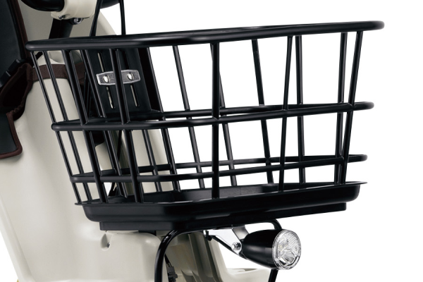 新発売の「ギュット・クルームF・DX」はチャイルドシートの取付位置を低く、ハンドルを軸としたチャイルドシートの回転半径を小さく設計することで、乗車時の安定性が向上し、前方の視界がより広くなりました。また、運転席とチャイルドシートの間のスペース確保により、チャイルドシートに膝が当たりにくく、はじめて子乗せモデルに乗車される方も扱いやすい設計となっています。さらに新たに搭載したバスケットはお子さまの脚が窮屈にならないように角を落とし、靴が入りにくいように縦長で狭めの格子をデザインすることで、お子さまの快適性と安全性も考慮されています。