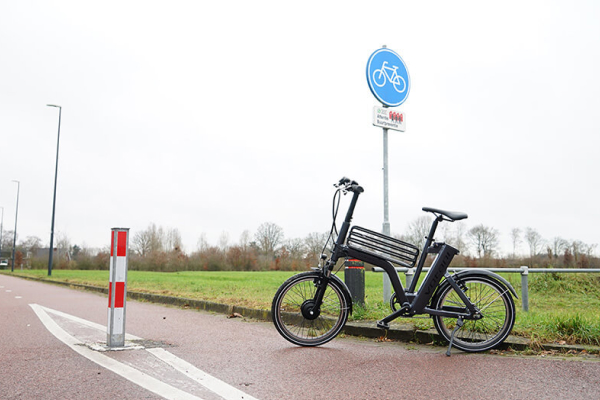 前輪からの衝撃を吸収するサスペンション付き。