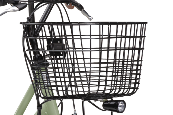 大きなカバンでも安心、約25リットルのスチール製大型バスケット
