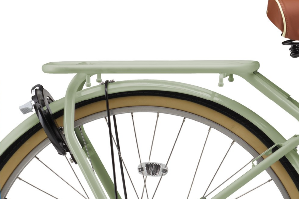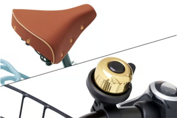 乗り心地にもこだわった大型テリーサドルや、ベルにはゴールドパーツを採用。