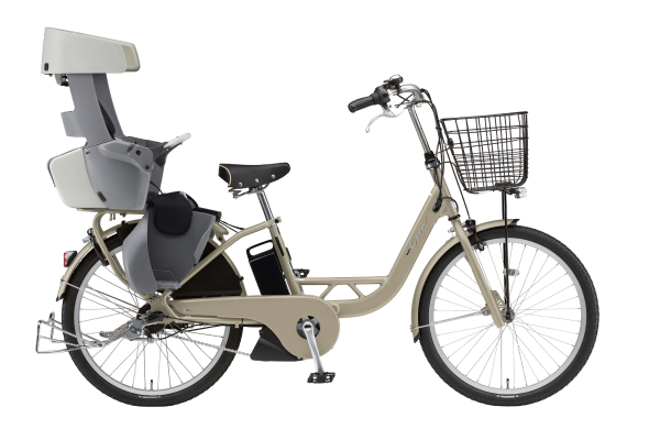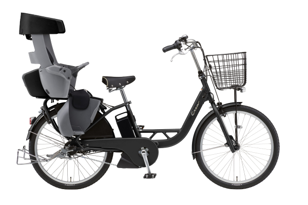 使い勝手に優れた夫婦共用の子供乗せモデル。24インチサイズで、小柄なママも高身長のパパも乗りやすいちょうどいいサイズ感を実現。体格の大きなパパもゆったり乗れるクルーザータイプのハンドルを採用し乗る人を選ばないモデルです。アシストパワー切替操作が不要になる「スマートパワーアシスト」やお買い物に嬉しい容量25ℓの大型バスケット、最長80km走行可能な大容量バッテリーの搭載など、基本的な機能面もしっかり押さえたモデルです。将来的にチャイルドシートを取り外してもスタイリッシュな外観を崩さないデザインで、買ってから長くお乗り頂ける一台です。