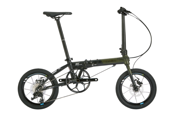 DAHONのヒット作「K3」をベースに9段変速、16インチ、DISCブレーキに設計変更を施したニューモデル。16インチ化を果たすとともにホイールベースも延長し人気のK3から更に走行性能、安定性を高めています。