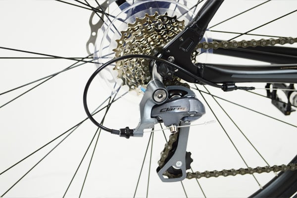 シマノ製「Claris(クラリス)」リアディレイラー搭載。確実な変速を実現します。