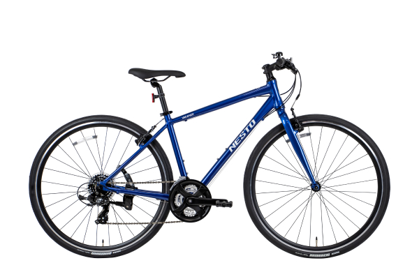 ベル、スタンド等の装備が充実し、気軽に街乗りできるクロスバイクです。やや太めの32Cタイヤは空気量が多いため路面の凹凸や段差の衝撃を吸収し、安定感があり乗り心地もGOOD。信頼のシマノ製フロント3×リア7の21段変速機を搭載し、サイクリングにも十分対応できるギア幅です。新設計された軽量で頑丈なアルミフレームで日本人の体によりフィットするようになりました!重量も軽くなり、キビキビとした走りが魅力です。オプションパーツの泥除けなどを装着することで日常使いの利便性をさらに高めることができます。シティサイクルからの乗り換えでも安心して走ることができるので、最初のスポーツバイクとして選ぶには間違いのない一台です。