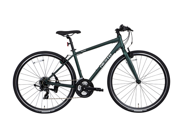 ママチャリからの乗り換えという事もあり車体が軽い、非常に軽く感じる。 オプションでカゴを買わずに自分でNESTO純正のスチール製フロントキャリアを購入し取り付けたがそれでも簡単に持ち上げられる。 フレームは44mmじゃなくて50mmにすべきだったかなと少し後悔、交換保証にチェックを入れておくべきだった。 自分の身長は175cmだけどハンドルが思いの外低く、前傾姿勢をすると肘を伸ばしてしまうので腕と肩に結構負担が掛かってしまう。 フレーム選びの重要性を身を以て知りました。 身長160cm台の人なら44mmでかなり快適に走れると思う。 自分の住んでる地域は坂道や舗装がガタガタな田んぼ道が在るのでタイヤの太さは32Cで正解だった。 段差を乗り越えても大きくフラつく事も無く振動も思った程強くない。 ブレーキはしっかり整備されていて効きが良く制動性に優れている。ペダルも大き目で体重を載せ易くて良し。 変速も異音が鳴る事も無くスムーズで快適。 総じて満足度が高い買い物でした、大事に乗り回します。