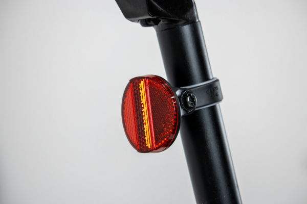 夜間走行でも安心なリフレクターも標準装備。コンパクトなのでバイクのデザインも邪魔しません。