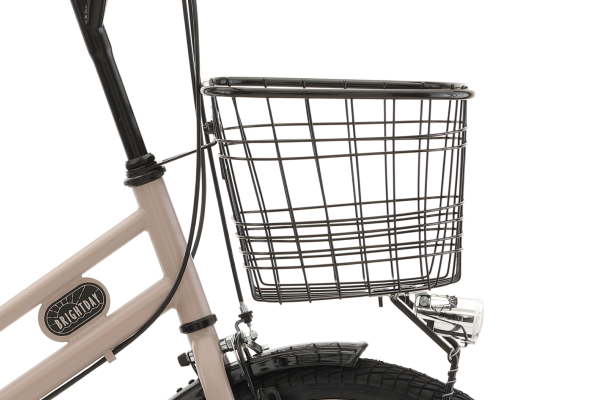 カゴがついていない、キャリアがない、ライトがダイナモ式など意外とほしい組み合わせがなかったりするミニベロですが、こちらのブライトデイはほしい機能が全部入りのミニベロです!フチ部が太く強化された前かごにリアキャリア。LEDオートライト、車輪が小さい分あったらうれしい外装6段変速。高性能なシマノ製ローラーブレーキといった便利な機能が全部入りで長くお使いいただける1台です。