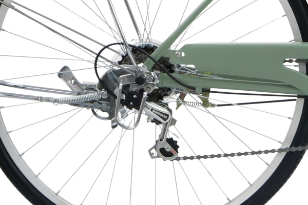 外装6段変速を装備し、坂道でも快適。