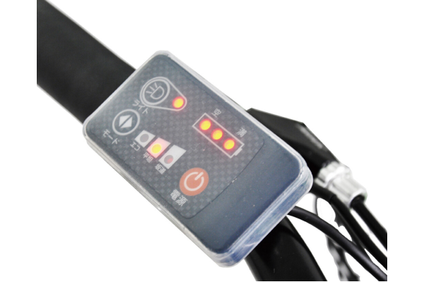 3モード(坂道・平坦・エコ)の切替ボタンでアシスト力をコントロール。バッテリー残量は3段階で表示。簡単に操作できます。