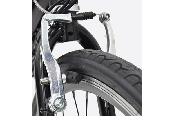 Vブレーキには、STIレバーに対応したミニVを搭載しており、信号や停止位置、下り坂でもしっかりと止まるブレーキ。
