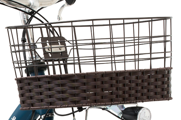 スクールバッグが収まりやすく、底面&再度の網目が細かく物が落ちにくい設計の大型籐風バスケットを装備。サイズは、高さ約220mm×奥行約310mm×幅約460mm