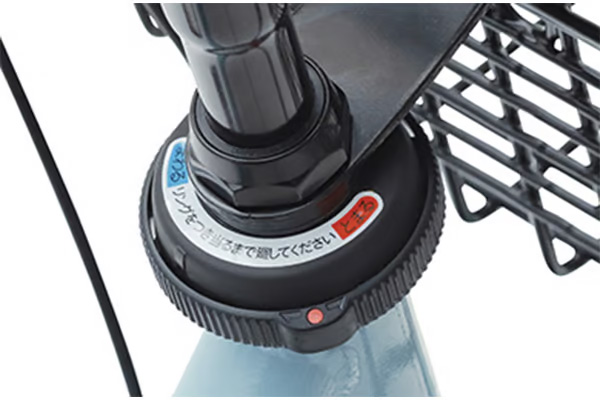 駐輪時のハンドルのふらつきを抑止するパーキングストッパー。荷物を載せ降ろしする際も安定します。