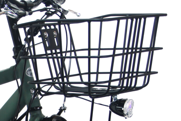 買い物や通勤・通学の荷物入れに便利な前かご付き(上面サイズ40×27×18cm)
