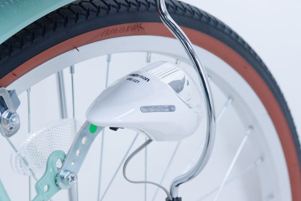 フレームのデザインやカラー以外にも、籐風バスケットや鋲付きサドルなど細かなパーツ構成にもこだわっています!ライトはフレームと同じカラーに光るサイドLEDイルミネーション仕様となっており、周囲からの視認性も高く夜間でも安心です。