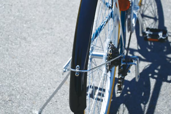 普段使いには必須の泥除け。路面が濡れていても安心して走行可能。