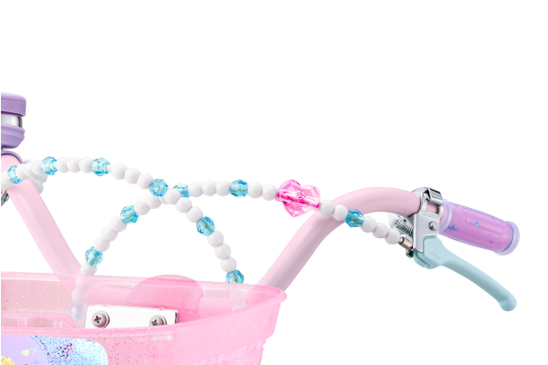 「アリエル」「ラプンツェル」「シンデレラ」がチェーンケースと前かごにあしらわれ、ブレーキワイヤーは宝石とパールのアクセサリー付き、スポークはカラフルなハート型アクセサリー付き。カーブ型サドルの採用でお尻がフィットし安定した乗り心地です。クイックレバーの採用で、工具無しで素早くサドルの高さ調節が可能です。S字型フレームの採用により、小さなお子様でも乗り降りの際に足が引っ掛かりづらくなっています。