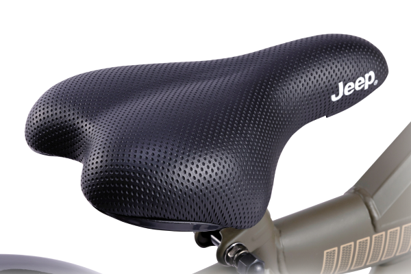 フワフワで乗り心地の良いブランドロゴ入りサドル。