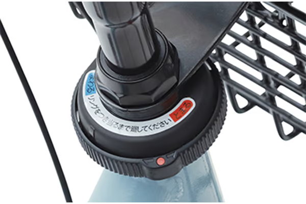 リングを回すだけでハンドルのふらつきを抑止するパーキングストッパー。駐輪時や荷物を載せ降ろしするときも安心。