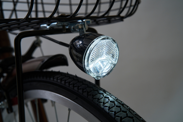 信頼のSHIMANO製外装6段変速を搭載。ブレーキは音が鳴りやすいものの雨や土埃に強いバンドブレーキ。