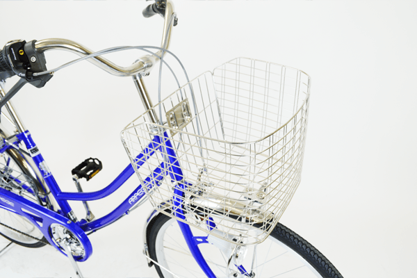 どんな道でも対応できる変速機、丈夫で大きめのカゴ、パンクしにくい分厚めのタイヤ、暗くなると自動で点灯するLEDオートライト、音鳴りのしにくいローラーブレーキなど、通勤通学に最適な装備を兼ね備えた自転車です。ハンドルやステム、カゴ、泥除けは全てステンレス素材を使用しているため、長期使用したい方へ大変オススメな自転車です。思わず大切に使いたくなる一台です。