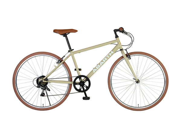 「ABARTH」から様々な場面で大活躍の万能型クロスバイクが登場しました! ダイヤモンド型スローピングフレーム、SHIMANO製の6speed、着脱が簡単な前クイックリリース、安定感のあるセミスリックタイヤ(700×32C)を搭載しております。