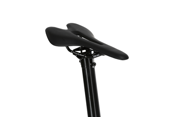 アルミ製のシートクランプとシートポストに、クランプボルトはチタン、サドルレールはクロモリレールを採用。