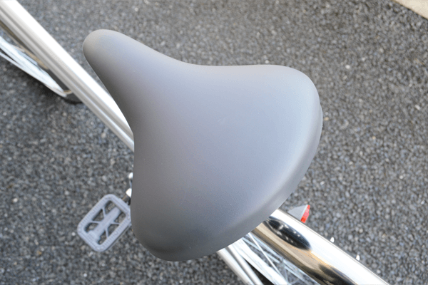 ゆったりとして幅の広いサドルで安定感を。低反発なのでお尻が痛くなる心配もありません。