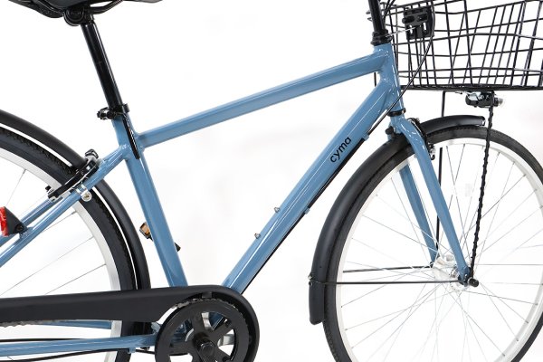 シティサイクル、ママチャリタイプに抵抗がある方に向けておすすめしたいのがこの「cyma weekCross」です。アルミフレームを採用し車体が軽く軽快な走りを実現しています。機能としてはカバンを入れやすいワイドな前かごを装備し、LEDオートライト仕様で夜道も安心。毎日の使用を想定し長持ちする耐摩耗タイヤやブレーキには超寿命で音鳴りしにくく雨でも制動力が落ちにくいローラーブレーキを選択しました。メンテナンス時にも部品の取り扱いが多く安心できる一般的なシティサイクル規格の27インチ仕様を採用しています。